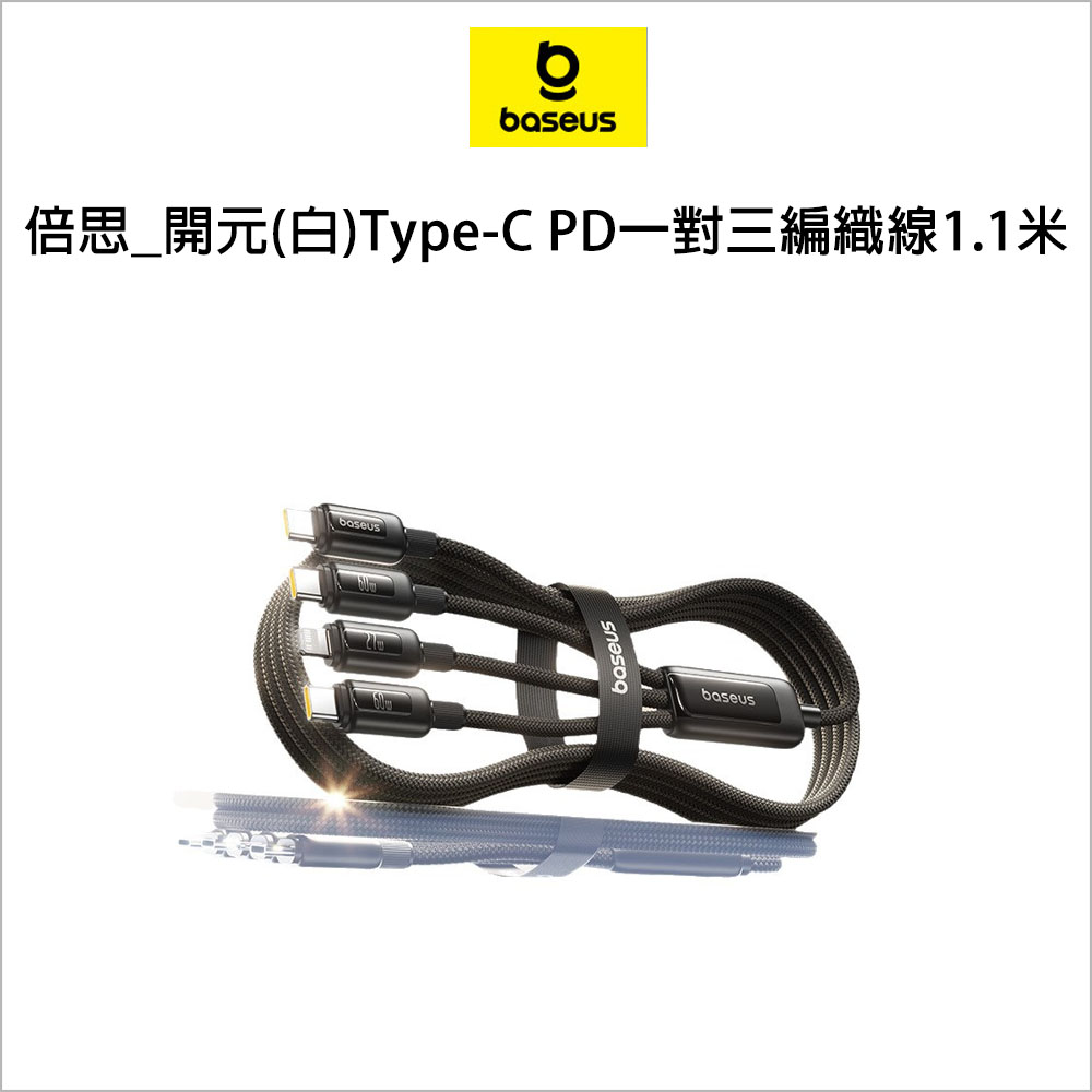 倍思_開元(白)Type-C PD一對三編織線1.1米